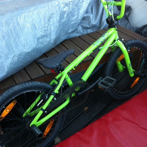Widcat BMX med fina däck. Bromsen är borttagen men sitter allt förutom vajern. Sitter pegs runt om
