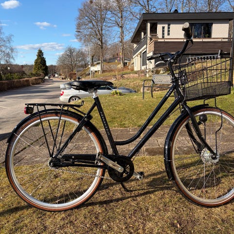 Det här är min mammas cykel, köpt sommaren 2019 med stora förväntningar på fina cykelturer. Livet blev som det blev och cykeln har mest stått fint och väntat. Mätaren visar endast 109 km totalt!