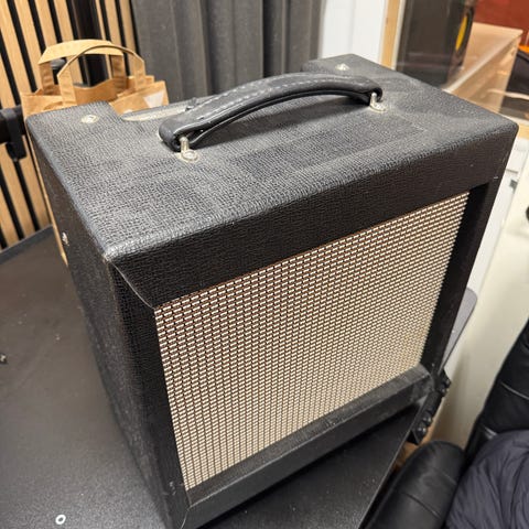En 25W kombo med 12” Celestion element. Den har tre rör i (1x 12AX7, 2x EL84) och kan emulera fyra olika klassiska förstärkare (har för mig att det är de klassiska fender, vox, marshall, och mesa boogie) med två kanaler och reglage för respektive kanal.