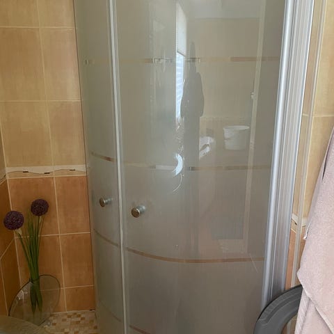 Dörrarna passar till duschhörna. Hämtas som de är på bilderna. OBS tunga!