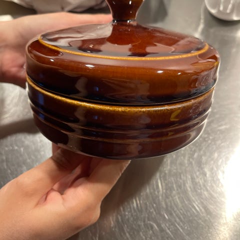 Skål med handtag i stengods