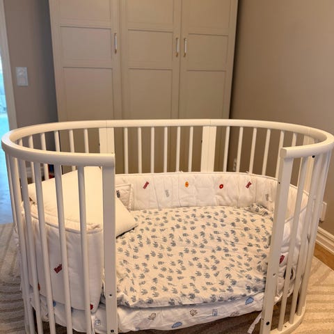 Stokke spjälsängsskydd till barnsäng i vitt