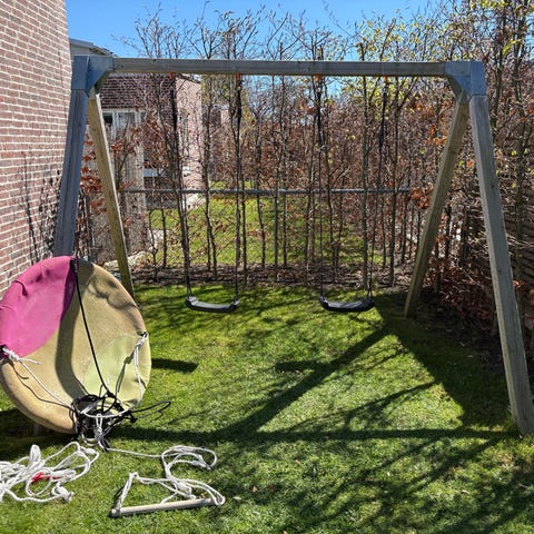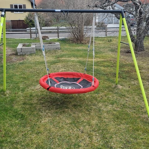 Gungställning med vanlig gunga tvåsitsgunga och repstege