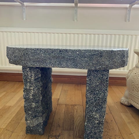 Denna bänk i massiv granit är ny/ oanvänd och bara blivit stående i min privata samling som prydnad, då jag tycker om sånt här lite föör mycket ;)