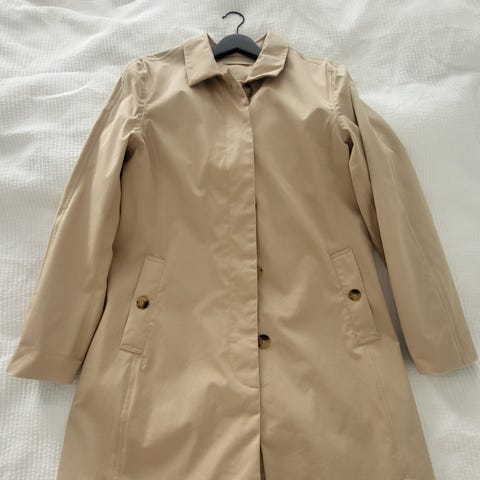 Oanvänd beige trenchcoat.
