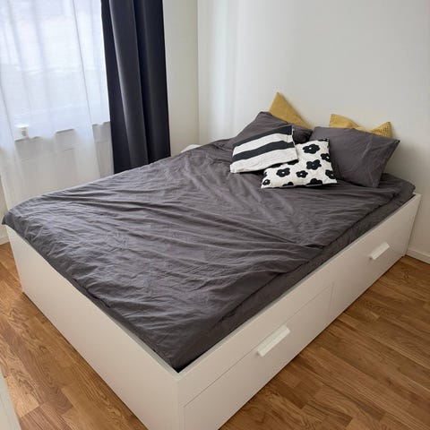 Säljer en stilren TONSTAD sängstomme i trä med praktisk förvaring (utdragbara lådor under sängen). Sängen är endast använd ett fåtal gånger och är i absolut nyskick.