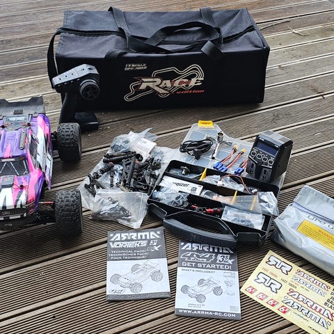 Säljer min Arrma Senton 3S BLX. Den är använd och har en del kosmetiskt slitage, men är fortfarande snabb och rolig att köra.
