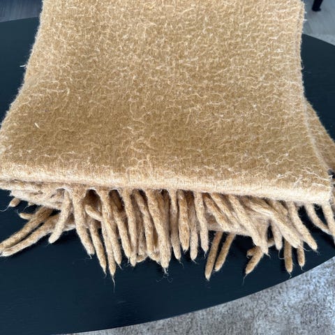 Mjuk pläd/filt från Hemtex i beige strukturmönster. Skön att ha i soffan eller på sängen.