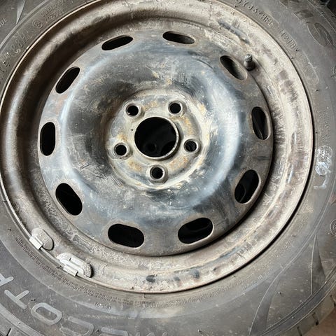 Fyra sommardäck som troligen suttit på svärmors Fiat Punto. Bultmönster och navhål ovan är något jag varit tvungen att fylla i varvid de kan vara fel, jag kan inte utläsa dessa på fälgen. Någon klokare än jag kanske kan göra det på bilderna.