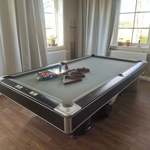 Biljardbord från MP Sports med blå duk och svart stomme.