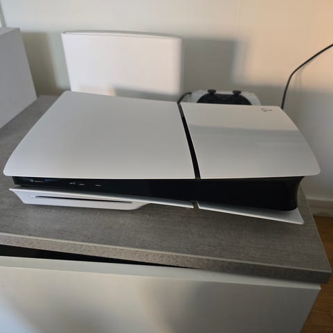 Sony Playstation 5 slim! Digital edition spelkonsol säljes med en trådlös fjärrkontroll Vit och svart modell med stående design, !