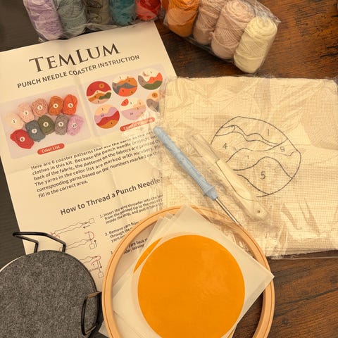 Punch needle broderikit med garn och mönster