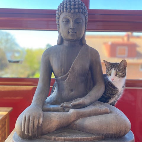 Fin Buddha prydnadsfigur i brun keramik/resin
