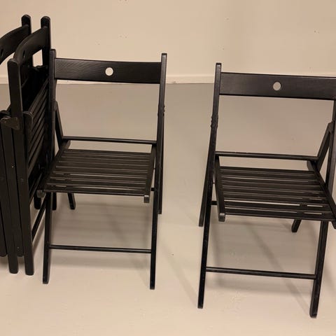 Fint skick. Använda som extrastolar vid ett kalas. Jag har 10 st. Lätta att förvara när de inte används. Går att hänga upp på vägg i förråd tex. Perfekta till kalas eller middagar när fler stolar behövs.