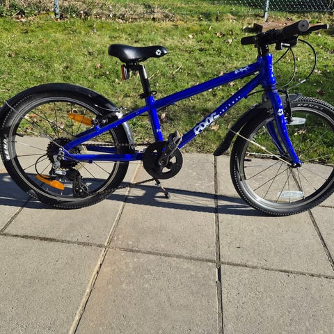 Orange Frog 52 barncykel med 20" hjul. Har växlar och stänkskärmar. Allt funkar bra, se bilderna för att se slitaget. Hämtas i Örnsberg.