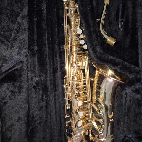 Altsaxofon i mässing. Modellen är särskilt designad för yngre, med klaffarna placerade något tätare ihop för att passa en mindre persons grepp, samt krökt nacke. Den ser ut som en mini tenorsax men är alltså stämd som en alt (Eb). Köpt ny på Thomann 2022. Skicket är utmärkt! Min dotter har spelat på den ca 2,5 år. Medföljer nackrem och originalmunstycke (enkel standard).