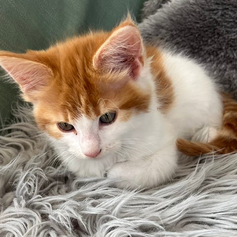Han är kelig och lekfull och kommer bli en stor kisse.
