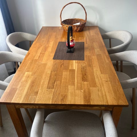 MÖRBYLÅNGA - IKEA matbord i trä + ELLOS stolar