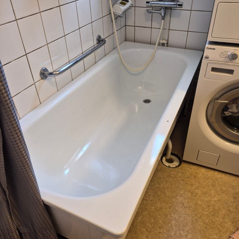 Glasdörr anpassad för badkar. Fäst i väggen i höjd med badkarskanten. Mått 140*80