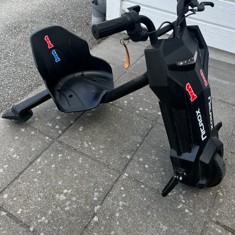 Säljes i befintligt skick. Liten spricka i sätet som limmats ihop. Hjulen är i använt skick. Fungerar bra att köra. Laddare medföljer.