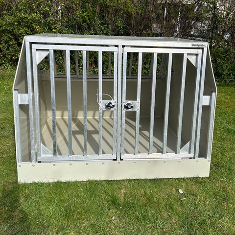 Hundbur i aluminium från Hundgubben med låsbara gallerdörr.