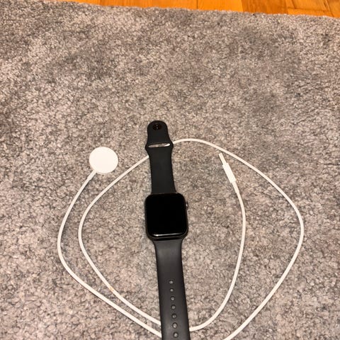 Apple Watch 46mm smartklocka med svart armband. Har magnetisk laddare och alla delar som syns på bilden.
