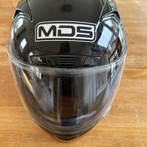 En svart hjälm stl L använd sparsamt. Pris 800kr