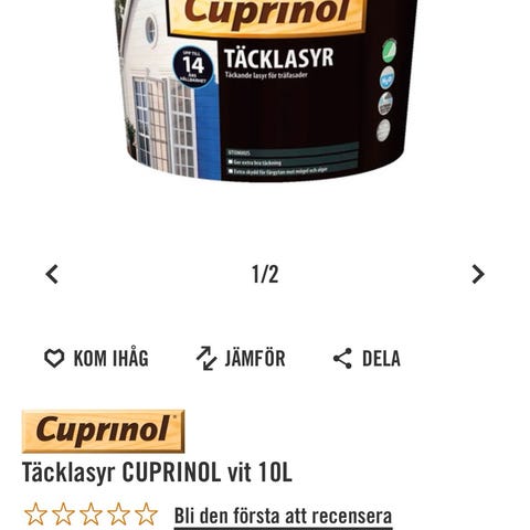 "Testvinnare" 26 liter Beckers akrylatfärg Max för målning av träfasad. Akrylatfärg med kort torktid som täcker bra och är lätt att måla med.