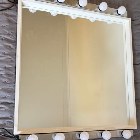 Sminkspegel i bra skick. Fungerar perfekt, bra ljus. 3 av 6 lampor medföljer. Hämtas i Bälinge. Nypris 1199kr, säljes för 400kr.
