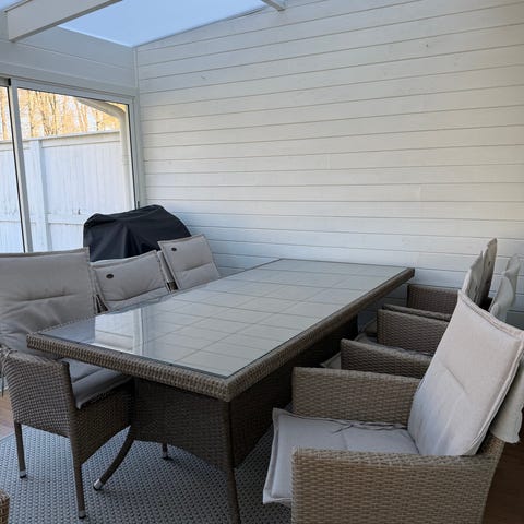 Bordet har några år på nacken och är väl använt men är i fint skick. Dynorna är inköpta förra sommaren.
