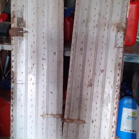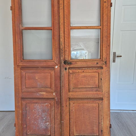 Gamla dörrar, tidigt 1900-tal. Gångjärn finns, tyvärr är karmen i dåligt skick. Se bild för mått.