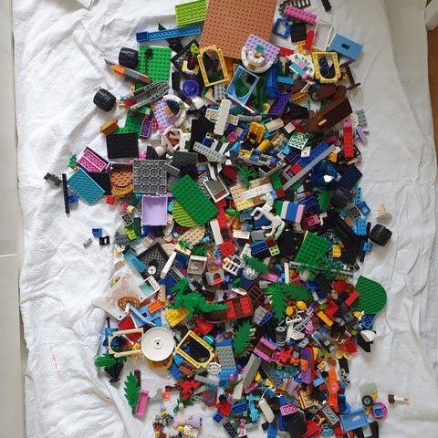 Blandade LEGO-klossar från olika teman i många färger och former. Bra mix av större och mindre bitar.
