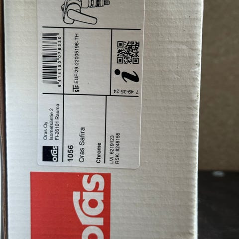 Oras Vienda beröringsfri tvättställsblandare (batteridrift). Flexibla anslutningsslangar. Medföljer delar och manualer som syns på bilden.