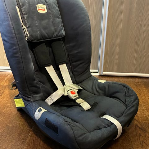 Bilbarnstol i bra skick. Nån enstaka fläck på tyget.
