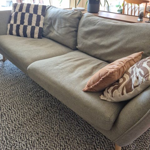 NÄgot som Àr riktigt bra Àr att klÀdseln Àr helt avtagbar och tvÀttbar. Soffan behöver en tvÀtt, sÄ om du tvÀttar den fÄr du en frÀsch och snygg soffa till ett superpris.