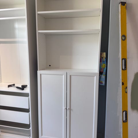 Har gjort om här hemma och ett skåp med 3 lådor och 1 par dörrar blev över. Finns lite småskador på lacken.