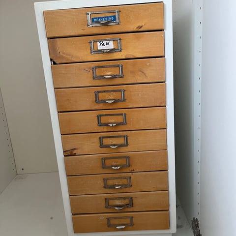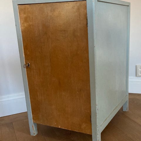 Furuhurts från ca 1960 med 5 bra lådor, 41x55 h70. Gedigen furu med furufaner utvändigt. Lådbottnar av masonit.