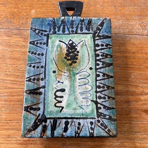 Handmålat keramikfat från Andalusien, Lebrillo Fajalauza, vintage 50-tal. Diam 26,5, drakmotiv i mitten. Stämpel undertill och kan användas både som fat och dekoration.