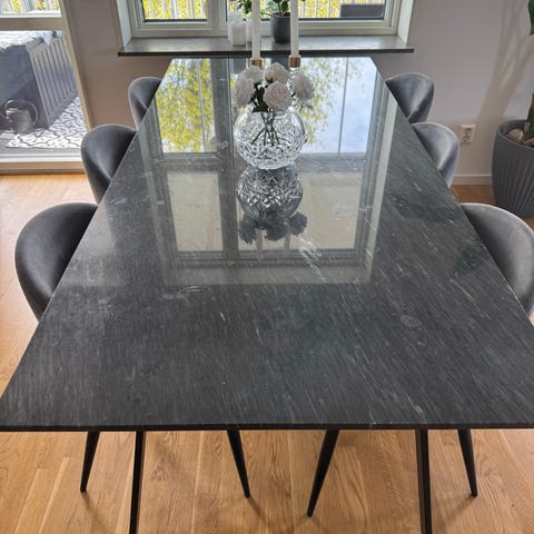 marmorbord och 6 stolar