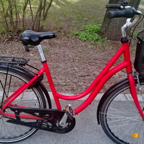 Säljer en svensk tillverkad cykel Rex , 28 tum , 7 växlar, fot och fram broms. Belysning fram och bak , original lås . Den är väldigt lite använd, stått inomhus och är i ny skick.