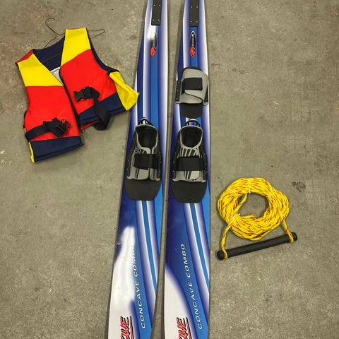 Obrien Reactor vattenskidor i rött och svart med justerbara bindningar som passar strl 35-46. 170 cm långa.