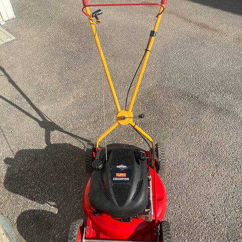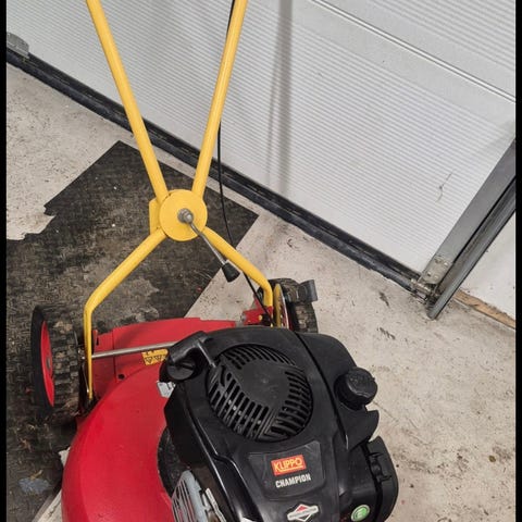 Klippo Champion gräsklippare med Briggs&Stratton motor. Servad med olja, nästan ny luftfilter och finslipade korskniv som är nästan nya. Startar väldigt lätt och klipper fint. I mycket bra skick i både motor och kåpan. Fins i Surte. Har ingen Swish.