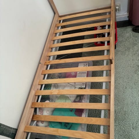Sängen är i gott skick och kommer från ett rök- och djurfritt hem. Perfekt som första säng för barnet.
