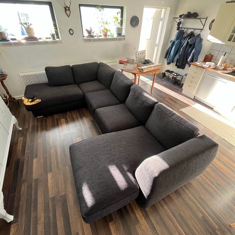 Nu säljer vi vår mycket välskötta soffa Friday från miomöbler köpt 2021. Färgen är brungrå. Soffan har en divan och en schäslong, två vanliga sittdynor och två nackkuddar. Friday är en rymlig soffa med bra komfort och lite högre ryggstöd. Soffans kuddar och dynor har avtagbara klädslar. Soffan har inga defekter och är nytvättad inför försäljning. Vi säljer soffan pga behov av en mindre soffa. Vi har ett djurfritt och rökfritt hem då allergi finns. Vänligen respektera priset i annonsen. Mått finner ni under annonsens bilder. Nypris 19500kr. Vårt pris 3900kr. Vi tar endast Swish.