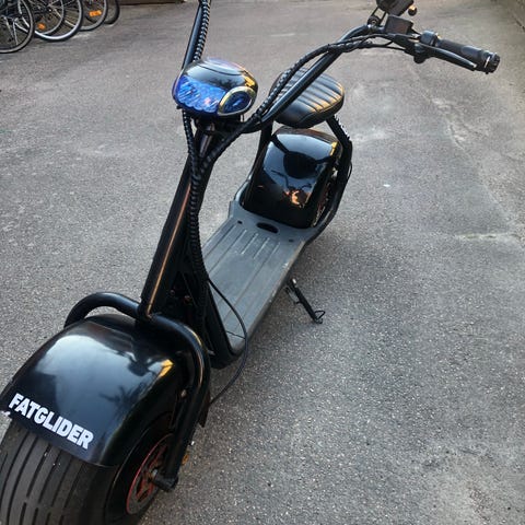 En svart fatbike 1000W med borstlös navmotor (Lithium 60 V 12Ah batteri).
