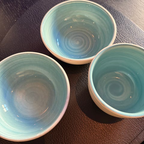 5 Rosa skålar från Mateus, säljes som set. Fina att ha till frukost, soppa eller snacks vid bordet.