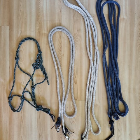 Med följer ett blått täcke med mjuk insida och ett färgglatt hönät att hänga upp.