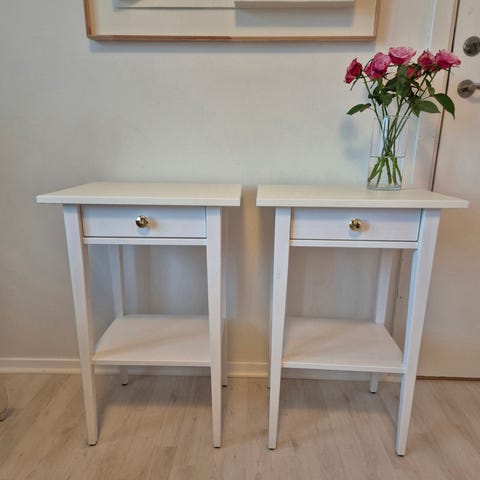 Charmiga antika sängbord med lösa marmorplattor i olika utföranden, en vacker detalj för ditt hem. Trots att sängborden skiljer sig åt, passar de fint i samma rum.