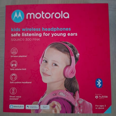 Fungerande Motorola Pulse Escape hörlurar i vitt med gråa kuddar och Bluetooth. Lite slitna på både kuddarna och hörlurarn