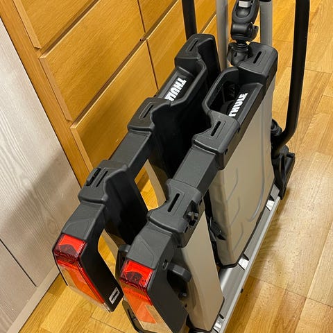 Thule EuroWay 921 cykelhållare för dragkrok, med belysning bak, plats för nummerplåt och plats för 2 cyklar. Har lås vid fästet och 7-polig elkontakt.